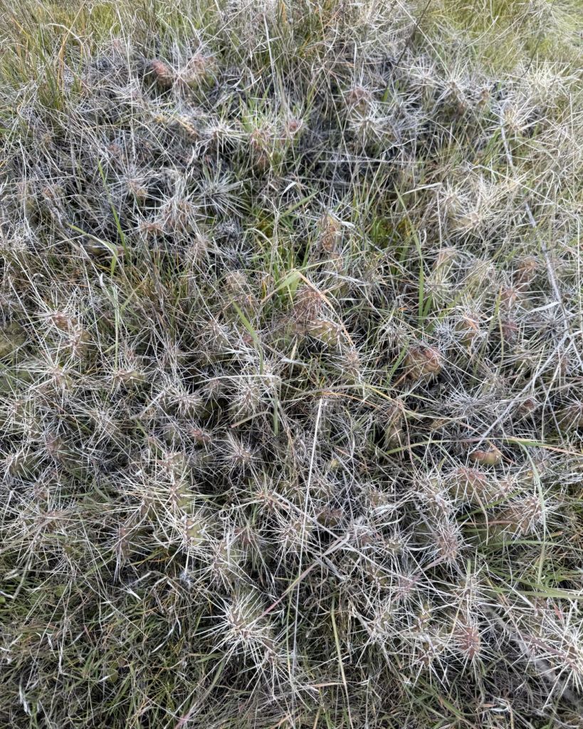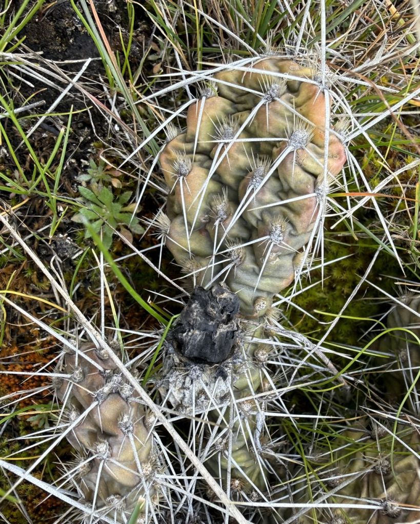 Opuntia columbiana (Columbia plateau prickly pear) is native to the Columbia River Gorge. It’s one of the few native cacti in Oregon and Washington. We found it growing in low, spreading mats east of The Dalles. The most conspicuous characteristic we saw was the crazy abundance of long thorns for such a small cactus. The pads were only about an inch long and the numerous spines were as long as the pads. We would need to return later in the year to observe its yellow flowers.