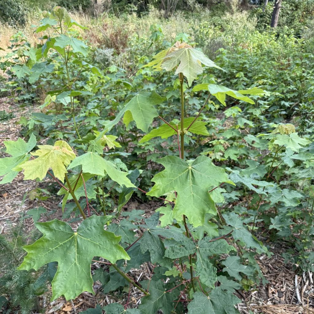 Take a walk down NE 72nd Drive — right after the sharp curve coming off NE Sacramento — and you will come upon a one-person restoration effort that has turned into something unexpected. The city created an opportunity when they cut down a blackberry thicket to survey the land for the Rose City Recreational Trail Project. A community volunteer took advantage of the potential for the area by digging out the blackberry roots and adding native plants like Oregon grape. Neighbors offered more native plants from their yards. And now the project has taken an exciting turn. Bigleaf maple seedlings have popped up everywhere! Now, this little restoration project is starting to look like a pocket forest in the making!