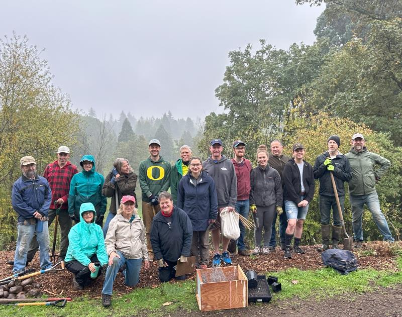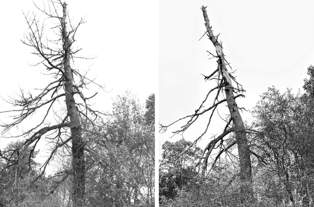 On a Sunday in October, three Rose City Bluff Restoration volunteers were working near the tall snag when crows alerted them to a red-tailed hawk sitting on the top of the snag. Soon the hawk dove to the ground at the base of the snag, then came back up to a lower limb. The hawk had a mouse in its beak. Sad for the mouse but lunch for the hawk. This reminded us that seven years ago the area might have been too thickly covered in blackberry brambles for the hawk to hunt there. One day the snag will fall and the hawks will move on and the mice will have better luck. In the meantime we hope we can continue to keep the area free of brambles and that folks who frequent the bluff trails continue to benefit from the community-wide and ongoing effort to provide access to nature on the golf course, however temporary. Here are two views of the snag, 2019 (left), and with fewer branches and less bark, 2024 (right). There are many more woodpecker cavities now than there were in 2019.